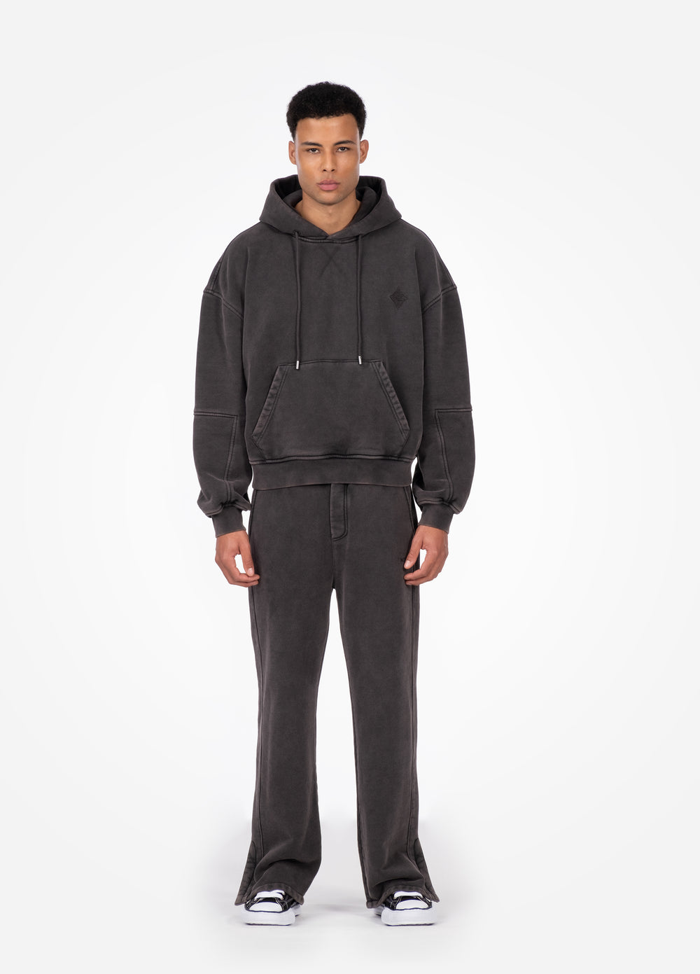 Iconic silhouettes take center stage, with baggy tracksuit bottoms, slightly loose jeans, and classic T-shirts anchoring the lineup.