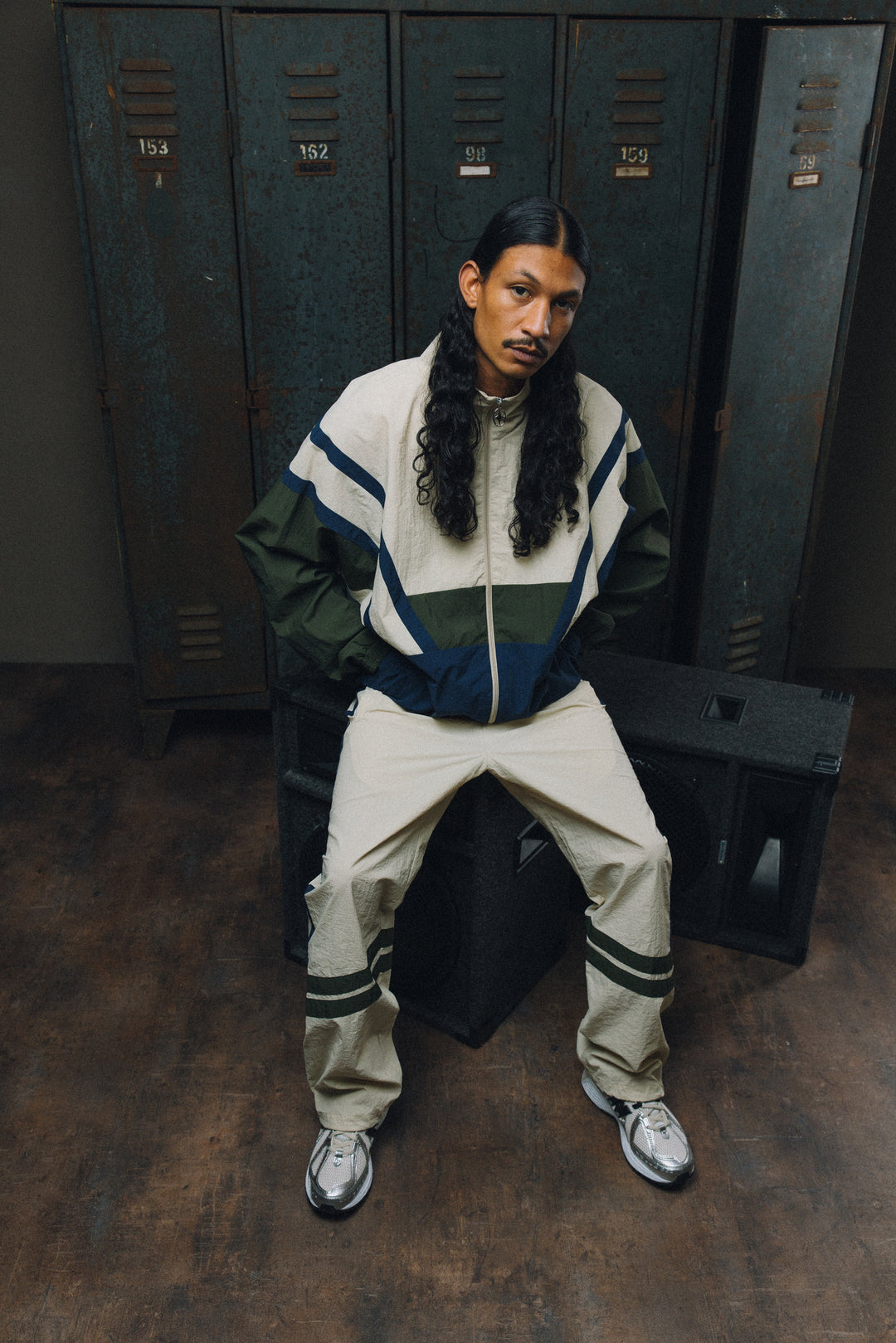 Iconic silhouettes take center stage, with baggy tracksuit bottoms, slightly loose jeans, and classic T-shirts anchoring the lineup.