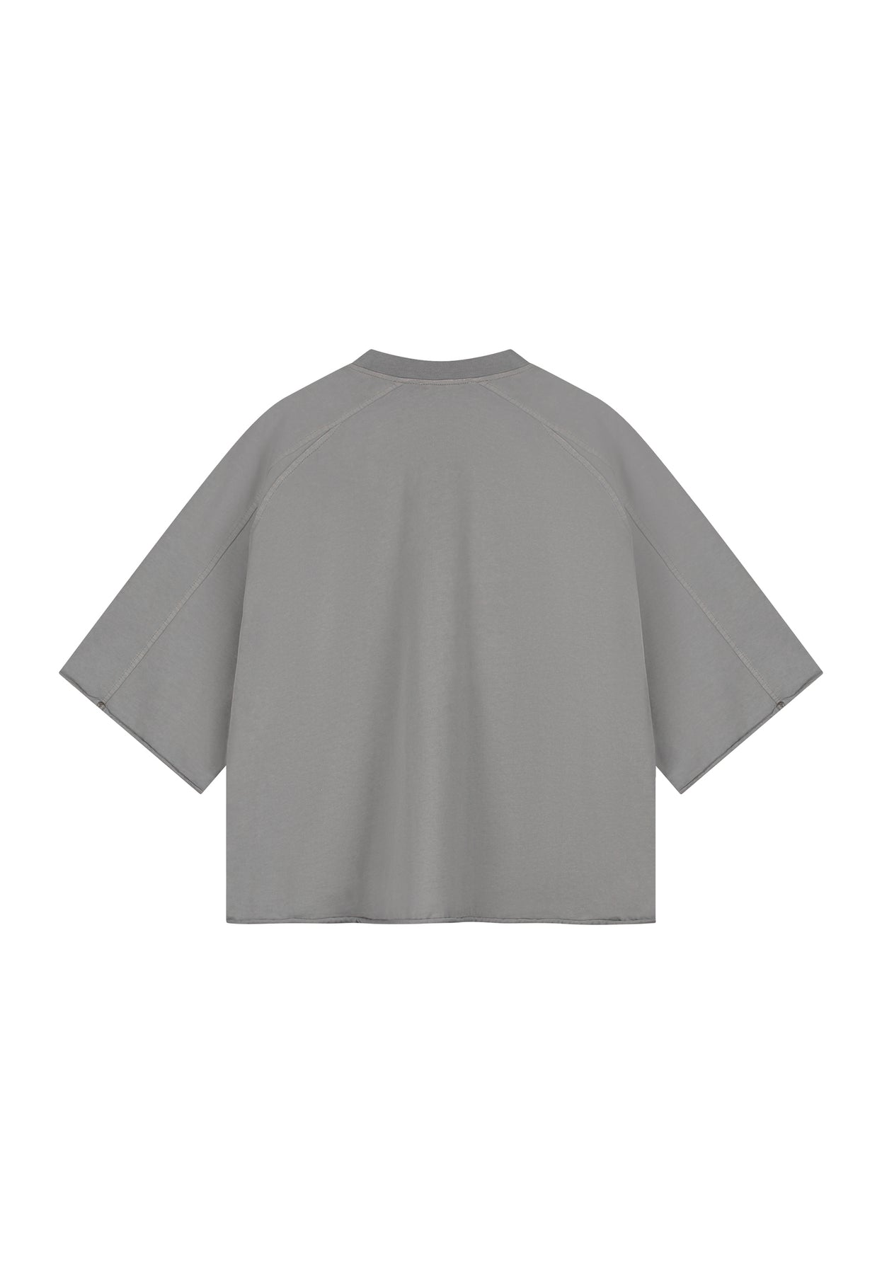The Nirvana Tee in grey features a soft, washed look and is crafted from 310g premium cotton. The stitchless finish enhances its minimalist aesthetic, while the neutral tone evokes a sense of calm and refinement.